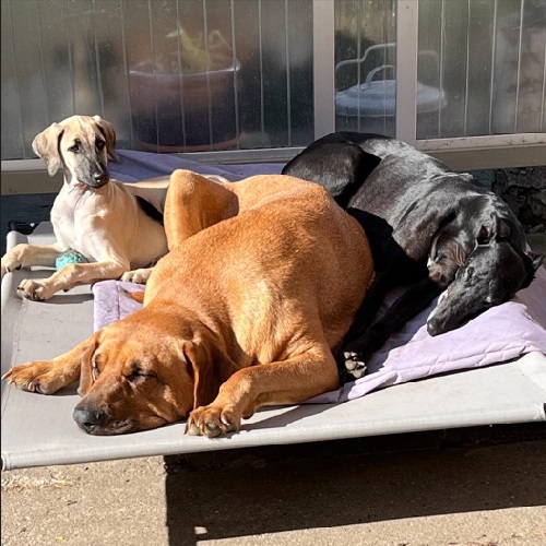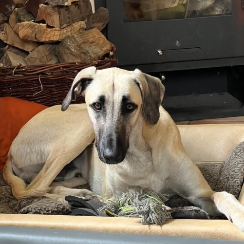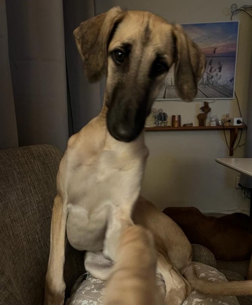 Der kleine Azha-Abdi mit seinen neuen Hundefreunden (Broholmer und Galgo) in seinem neuen zu Hause. 💖💖💖