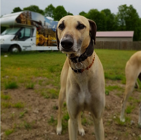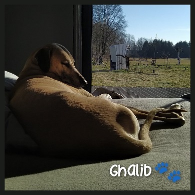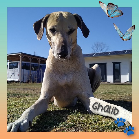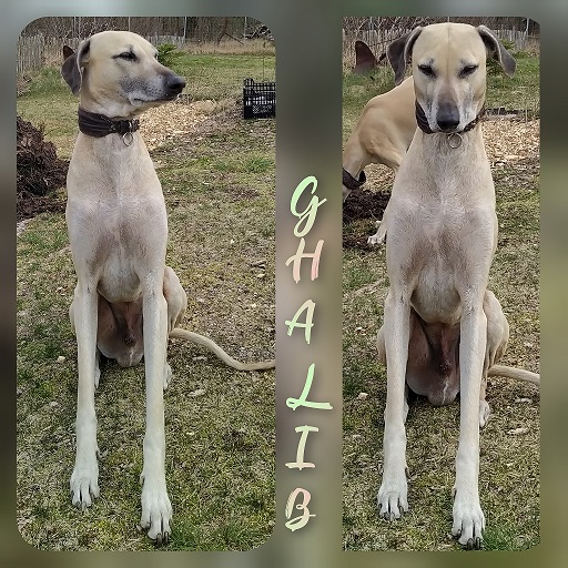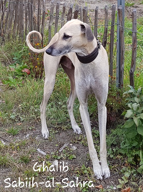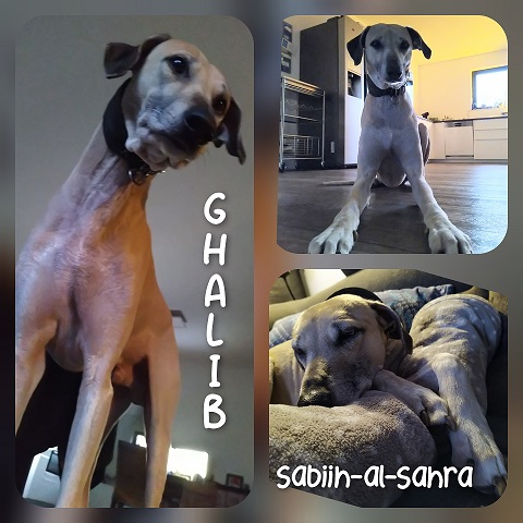"Ich bin Ghalib (der Sieger) geb. 24.01.2013 und bin ein sandfarbener Rüde mit Maske aus dem Haus Sabiih-al-Sahra." |