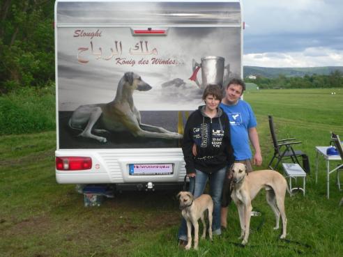 2010 begann unsere Liebe zu den Wesen, die sich Sloughi´s nennen. Für unsere 12 Jahre alte Windhundmischlingshündin "Betty" holten wir uns den Sloughi-Welpen Amal ins Haus. Sein sanftes, anmutiges mit Eleganz glänzendes Wesen, verzauberte uns und unsere Betty, wie einst im Mai. Mit 15 mussten wir dann leider von Betty Abschied nehmen. Damit Amal ein neuen Gefährten bekommt, holten wir 2013 den kleinen Ghalib zu uns. Eine große Freundschaft zwischen den Beiden entstand sofort. Man möchte meinen, die Zwei verstehen Ihre Fremdsprache perfekt. Die Beiden leben ihr Wesen, sowie es in jeder Sloughi-Literatur zu finden ist. Für uns sind die zwei Jungs Goldstücke, die unser Leben bereichern. Sie zählen als vollwärtiges Familienmitglied, die überall mit uns reisen, uns begleiten und einen großen Platz in unseren Herzen gefunden haben. & weil zwei Jungs nicht allein bleiben